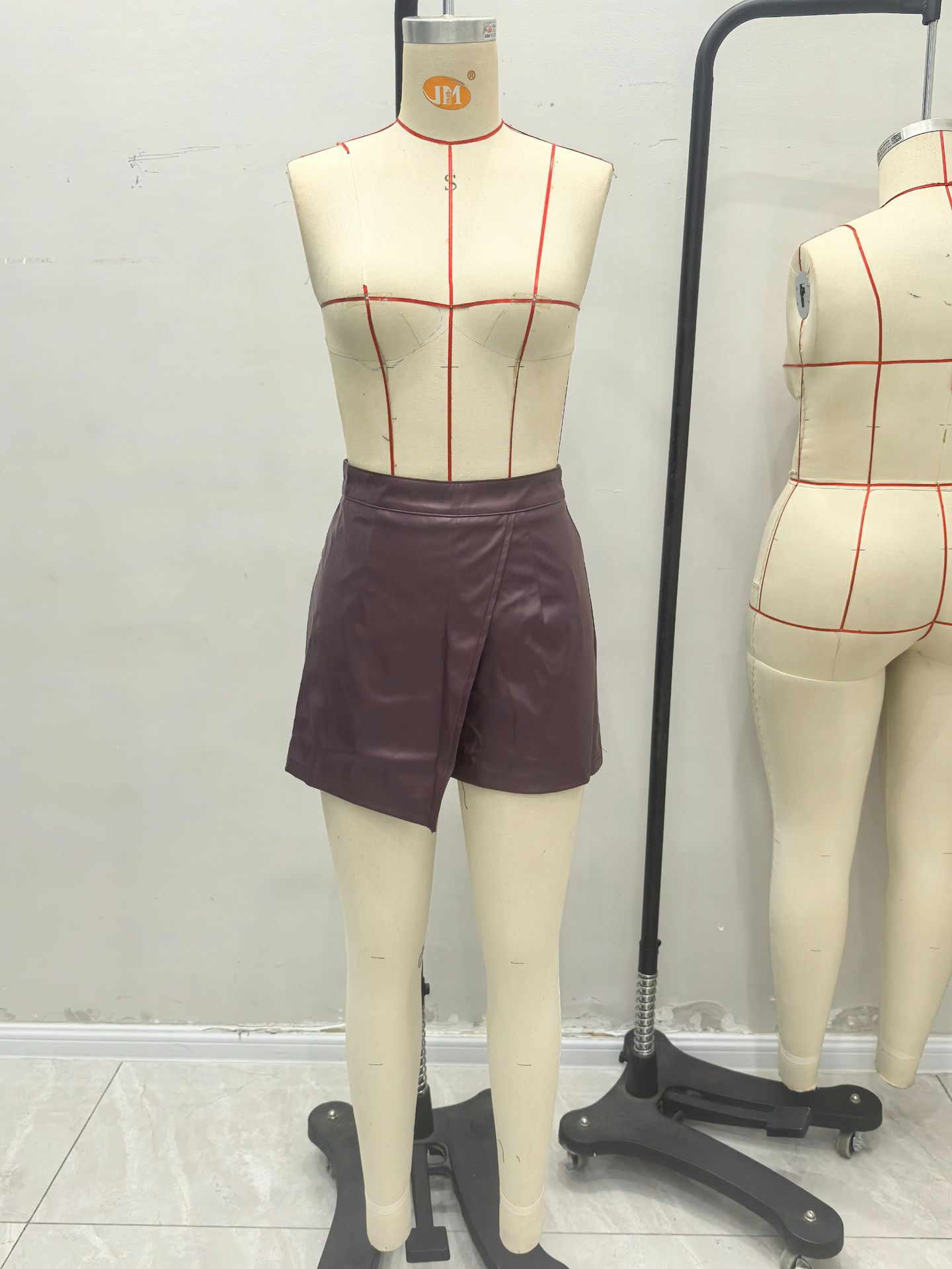 Casual High Waist Irregular Asymmetric Faux Leather Bottoms Skort