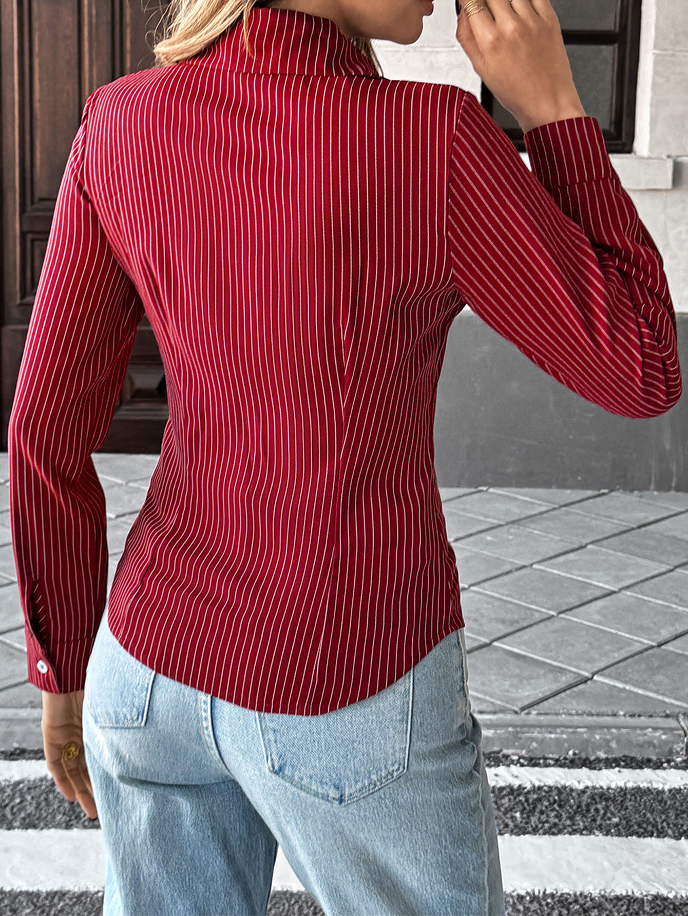 Elegant Contrast Color Striped Blouse