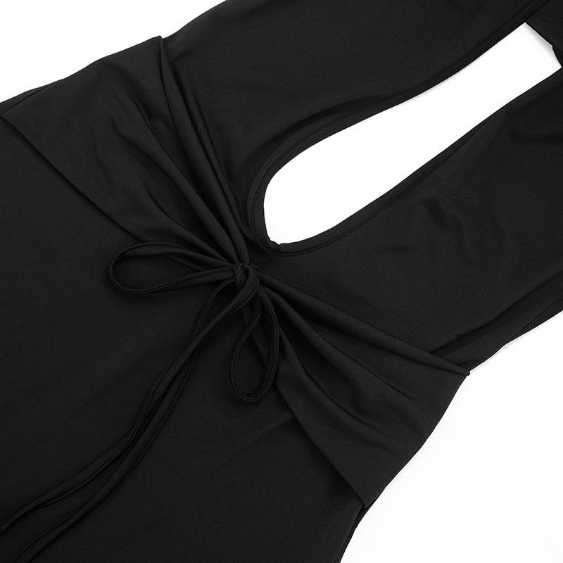 Backless Deep V Plunge Long Sleeve Solid Color Jumpsuit