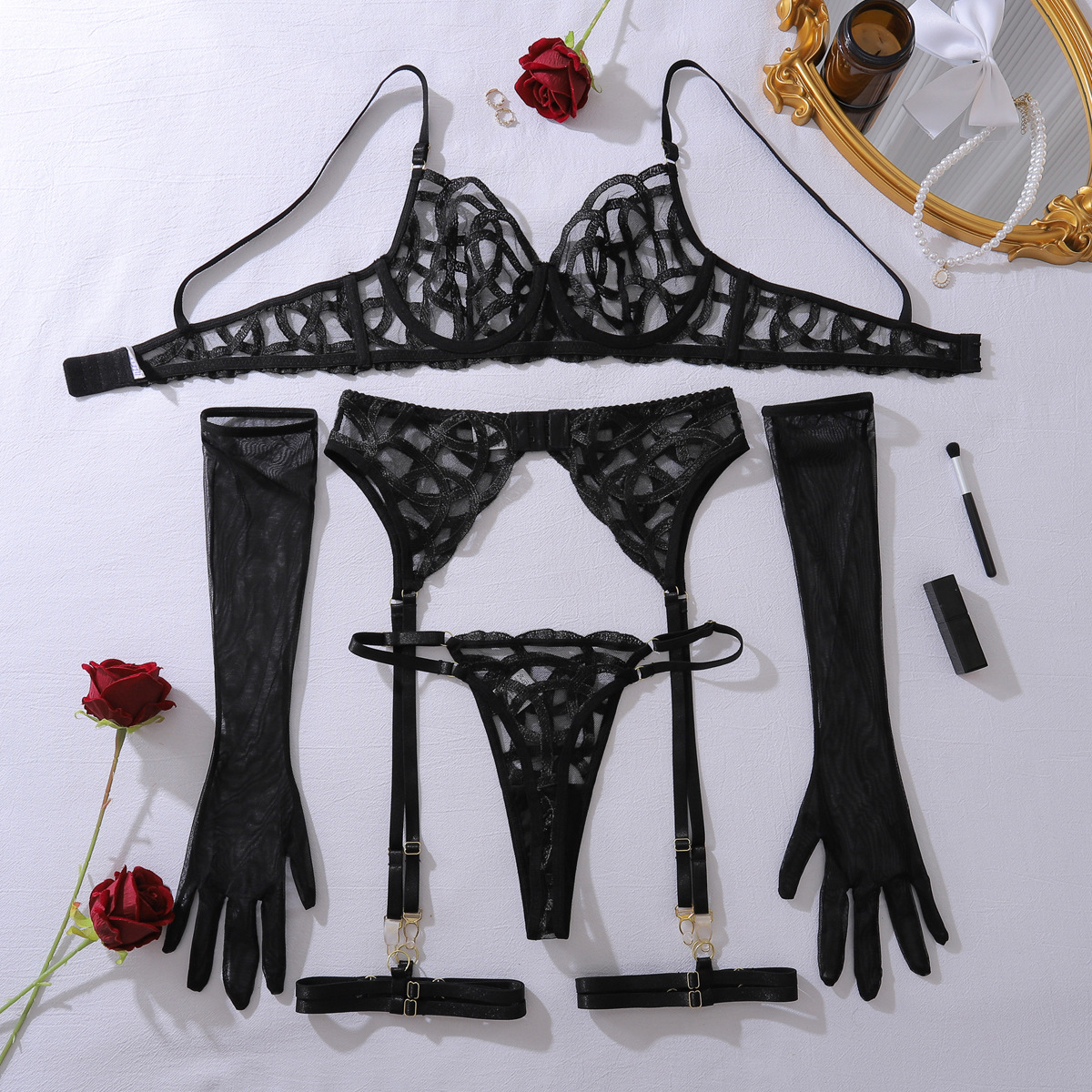 Lace Floral Embroidered Lingerie Sleepwear Set Seductive