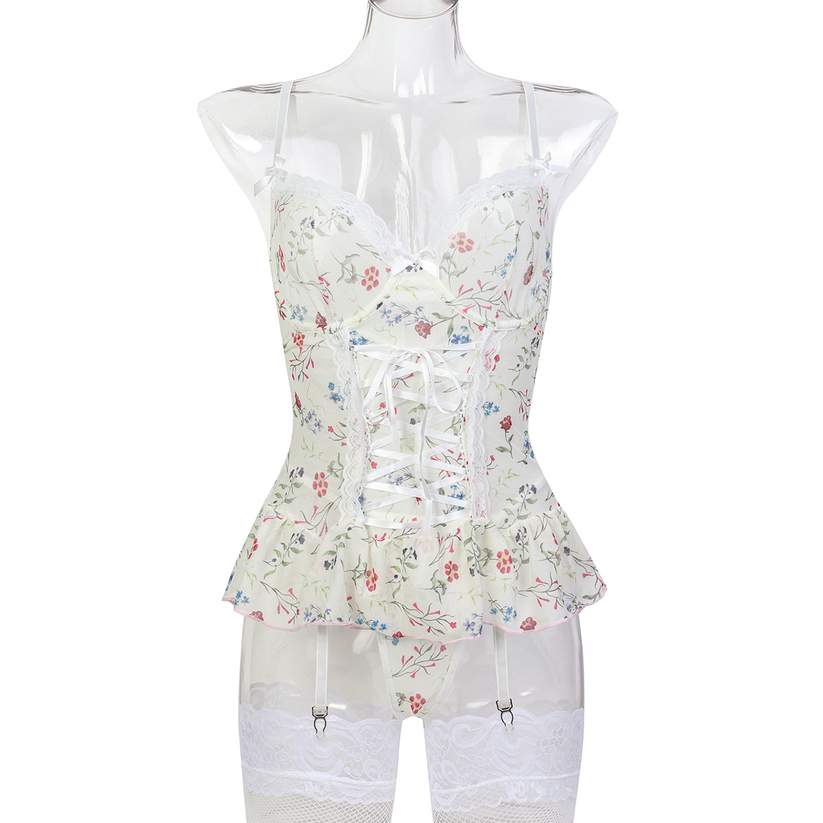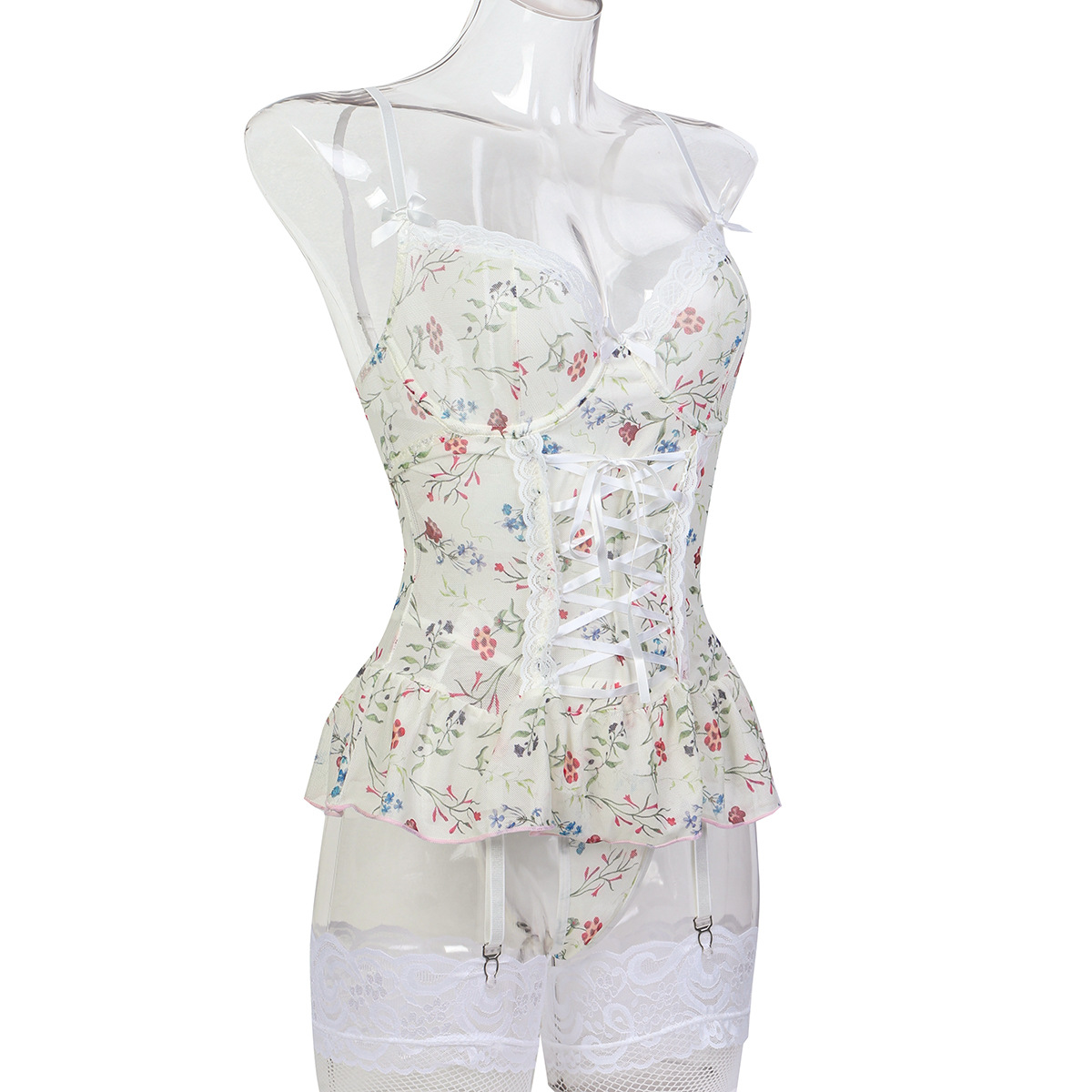 Element: Bow,Cutout,Lace/Tulle/Fishnet,Lace up,Ruched,hook closure
