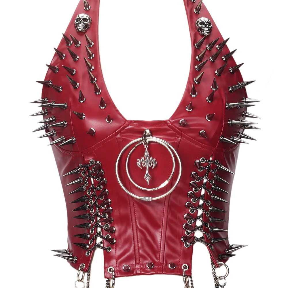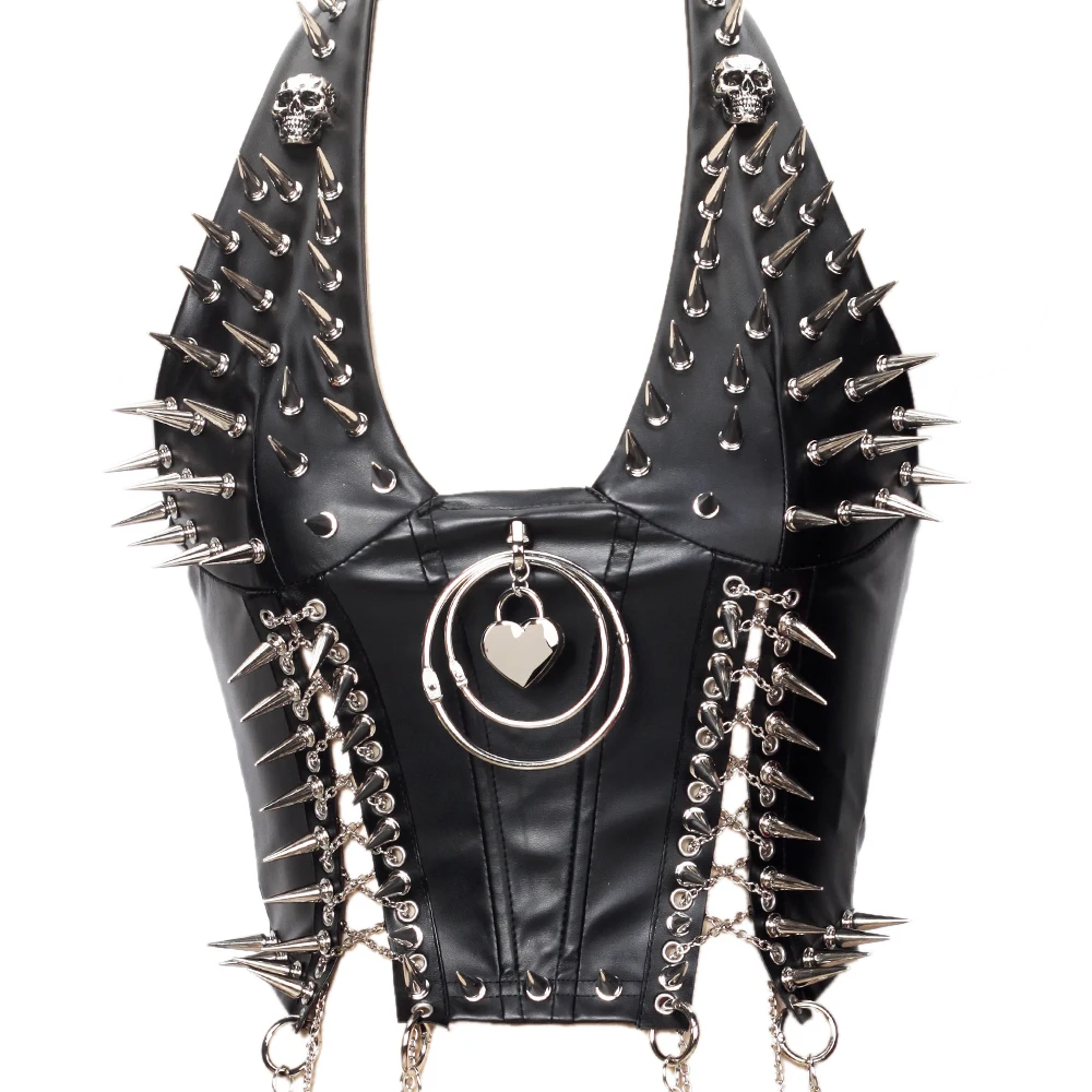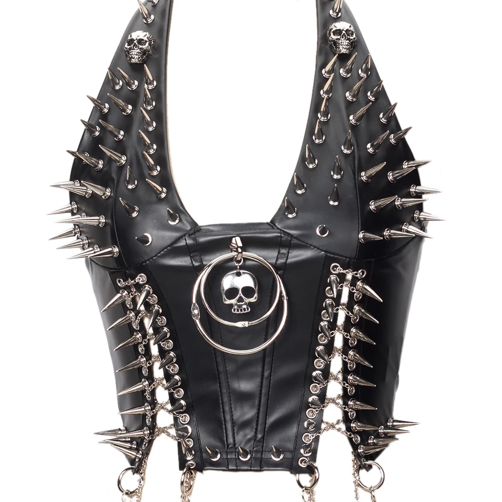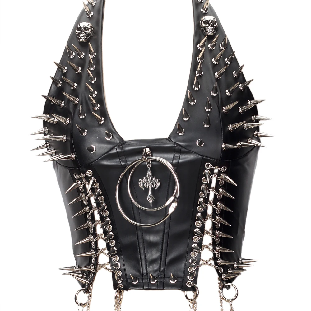 Gothic Bustier Top Y2K Punk Studded Tops Vegan Leather Goth Clothes Crop Rock Rivets Woman Camisole Skull Grunge Emo DIY Tanks