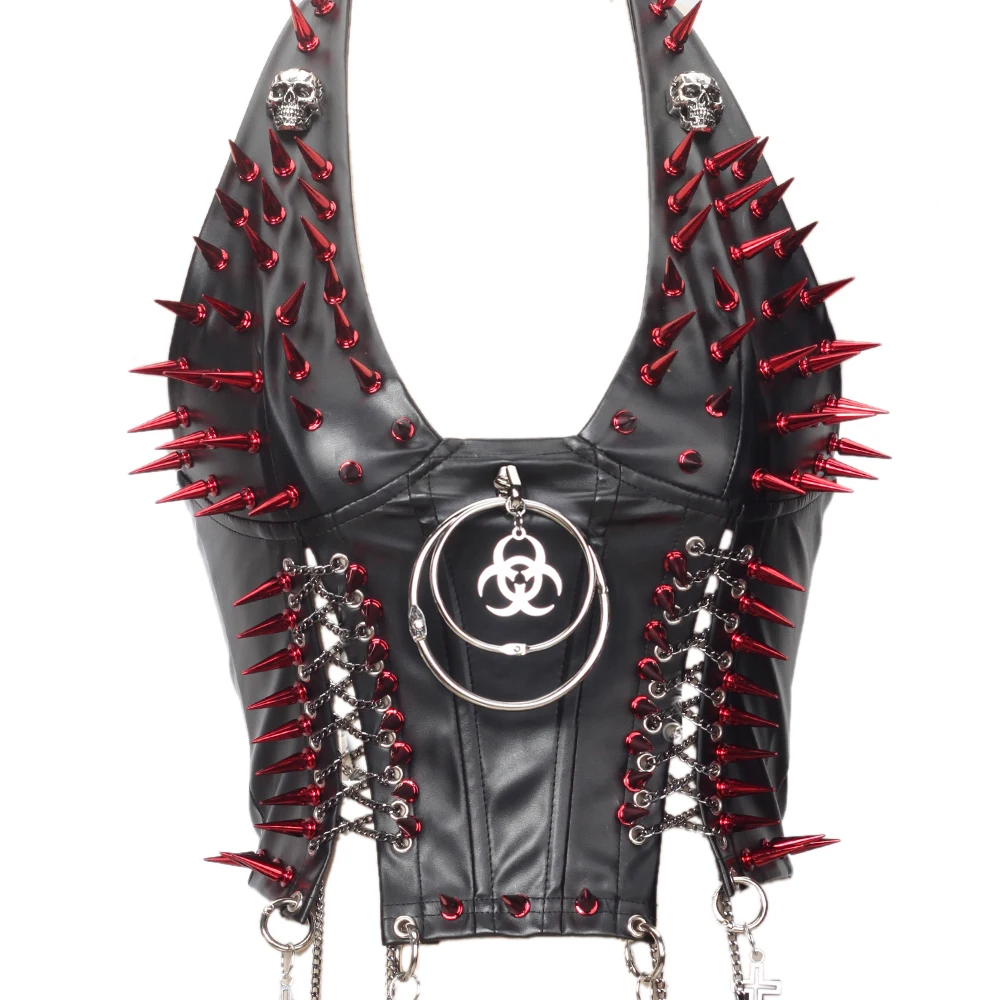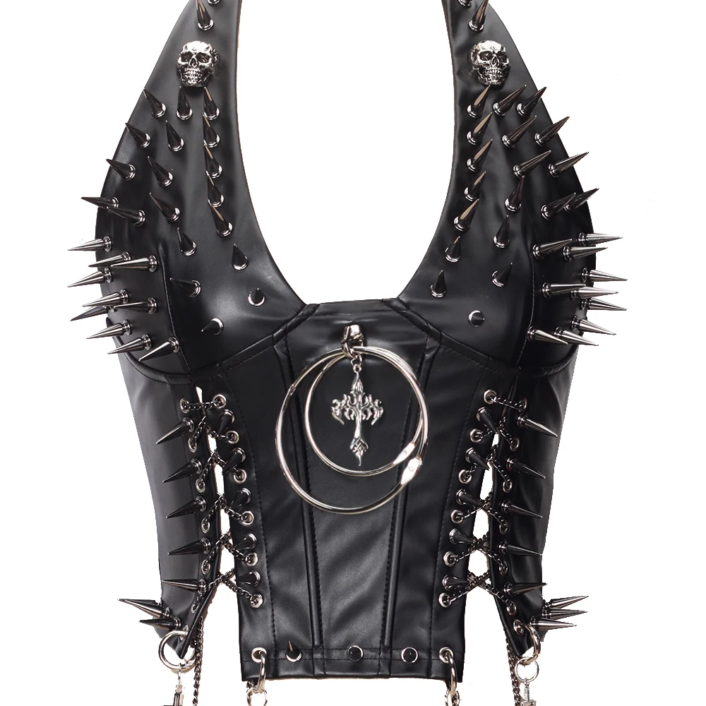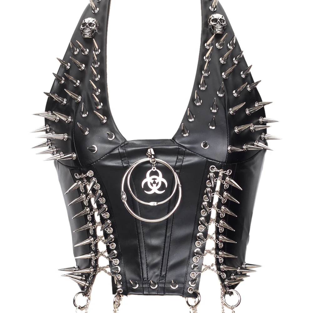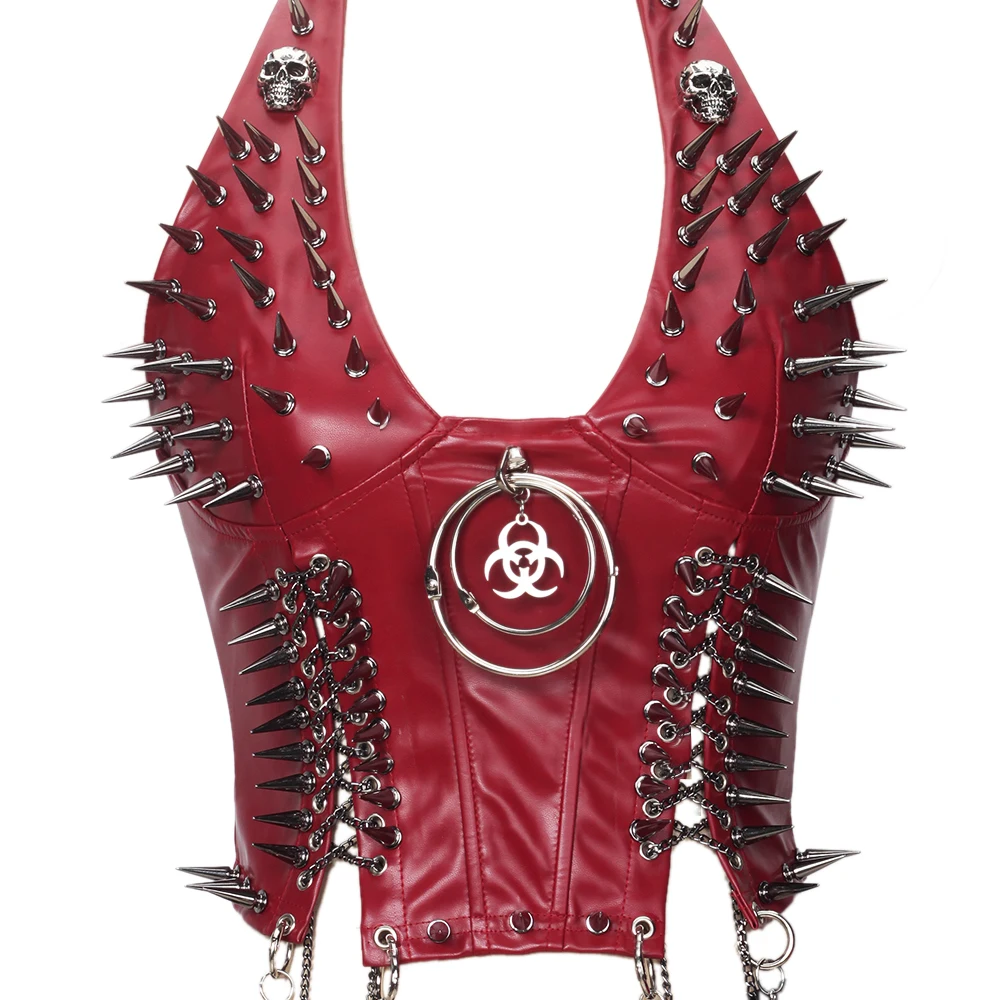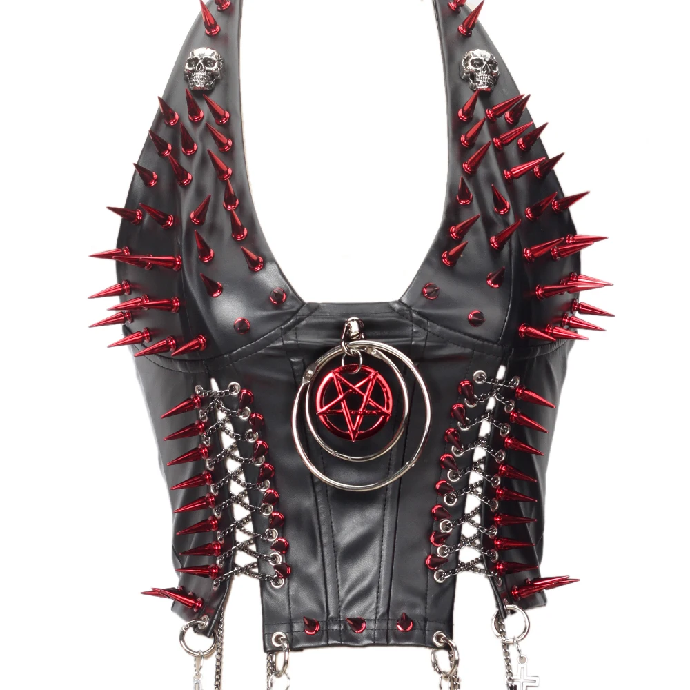 Gothic Bustier Top Y2K Punk Studded Tops Vegan Leather Goth Clothes Crop Rock Rivets Woman Camisole Skull Grunge Emo DIY Tanks