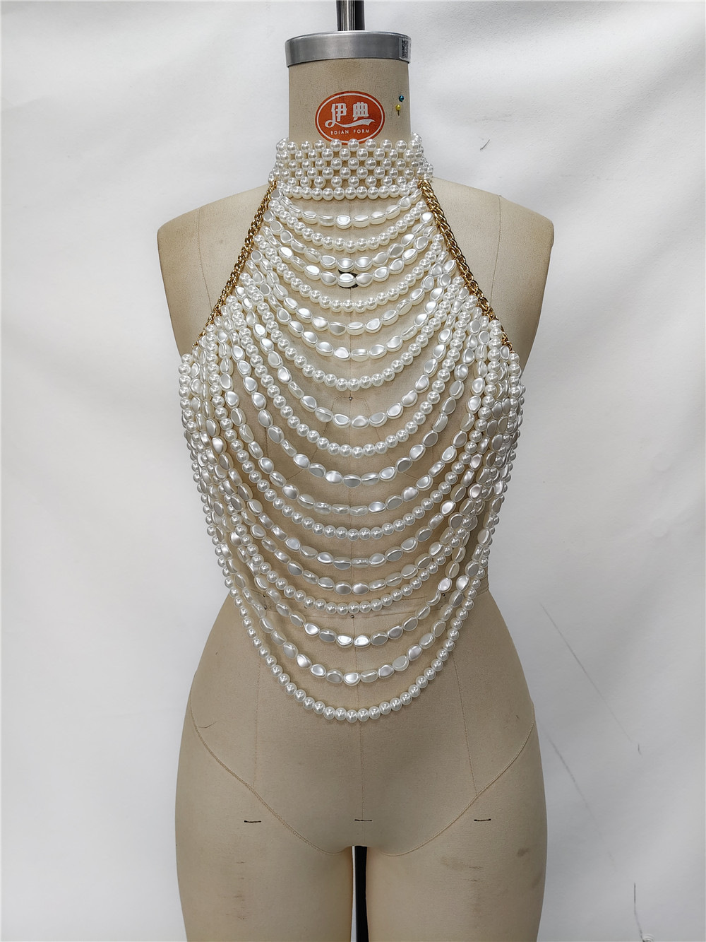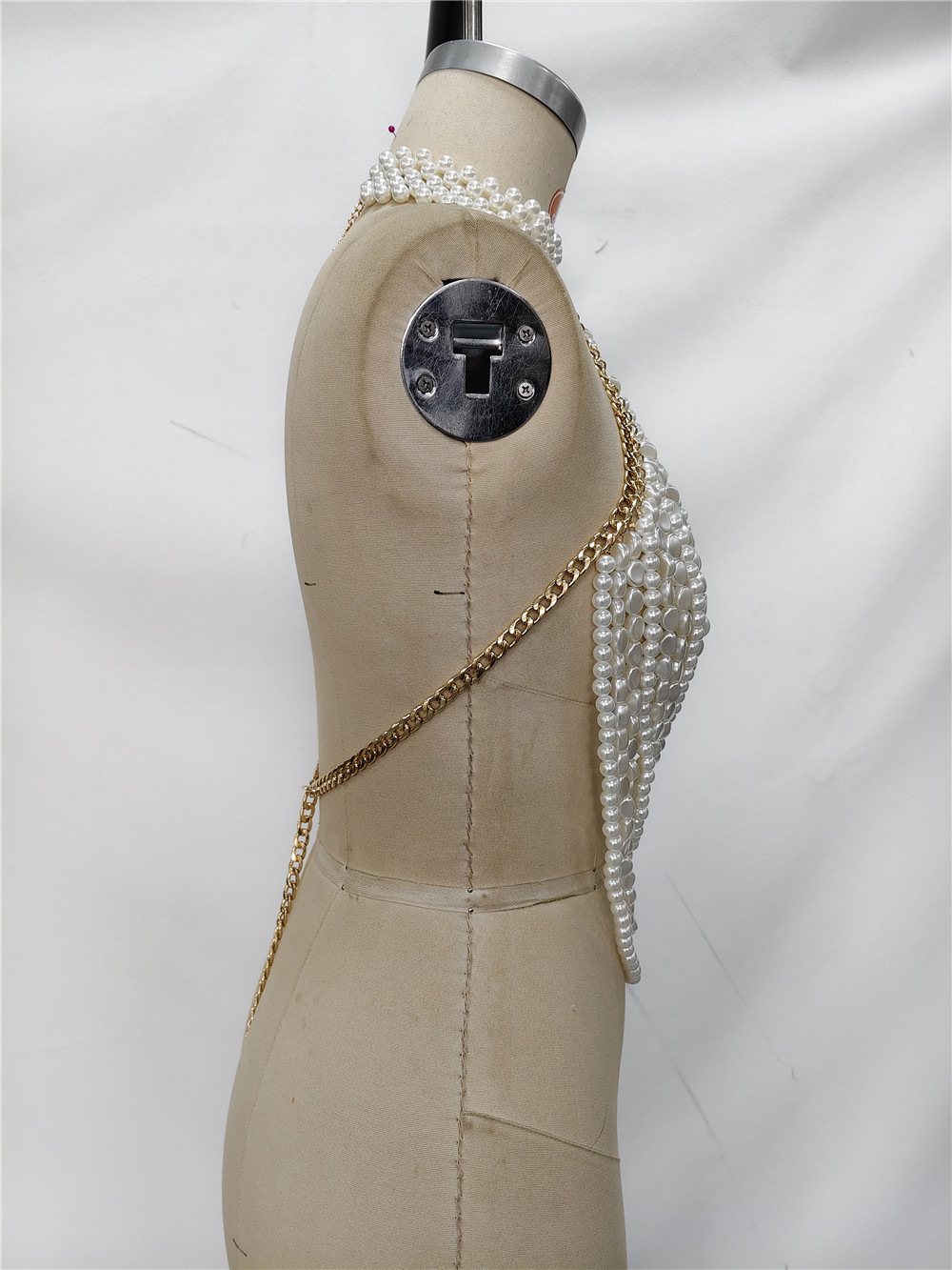 Pearl Halter Sexy Backless Handmade Bra T-shirt