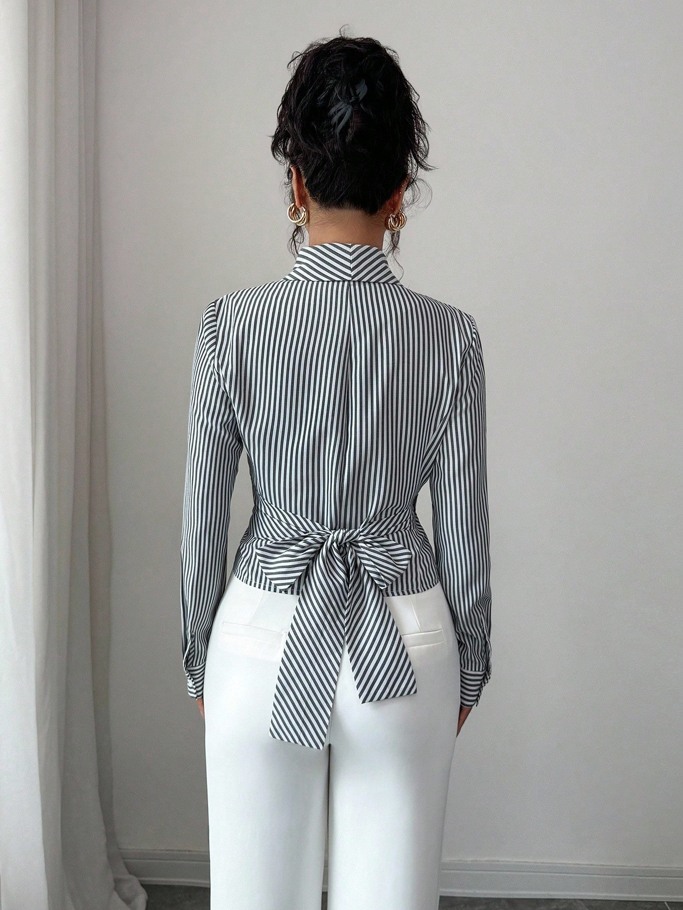 Elegant Striped Cardigan Blouse