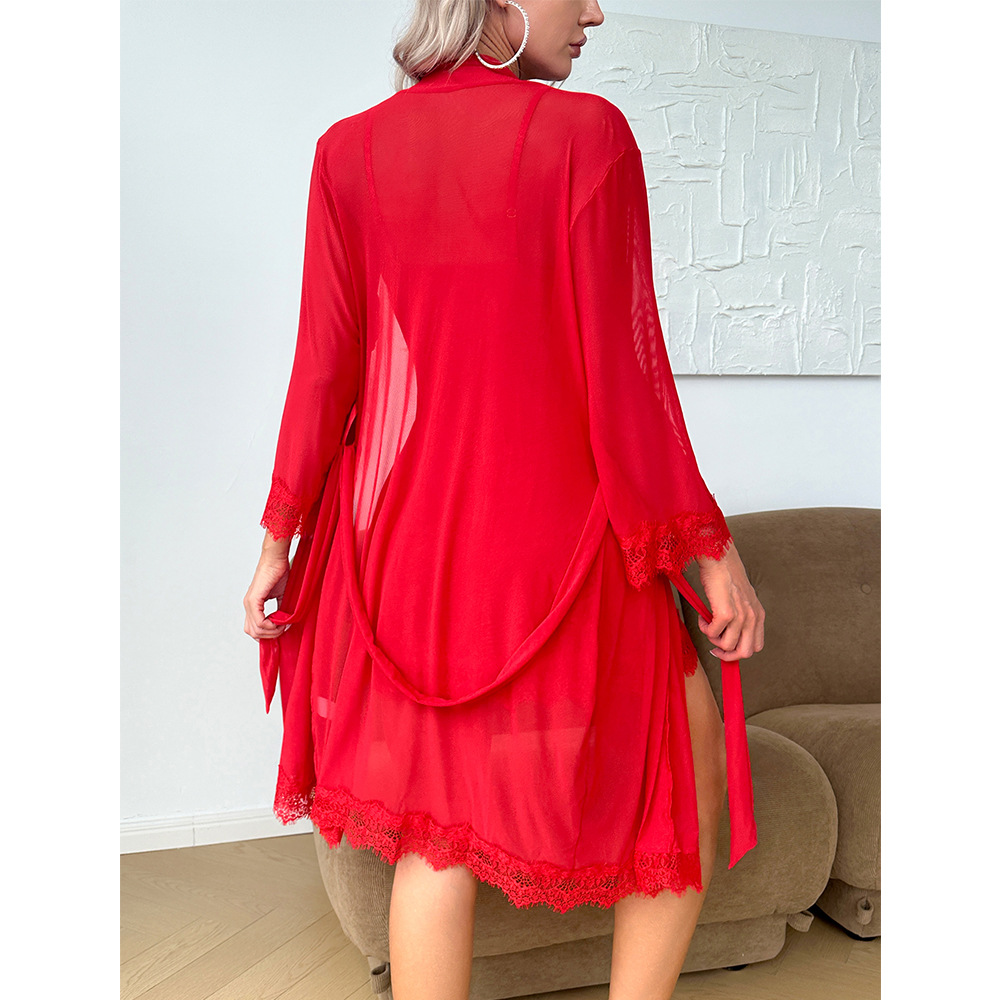Lace Night Sleepwear Pajamas Set Casual Nightgown Loungewear Three Piece Set
