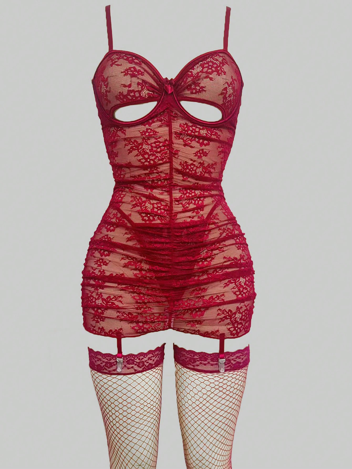 Bow,Cutout,Lace/Tulle/Fishnet,Ruched
