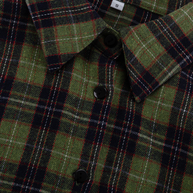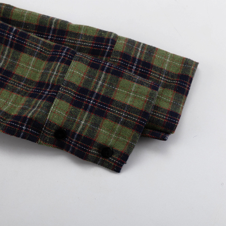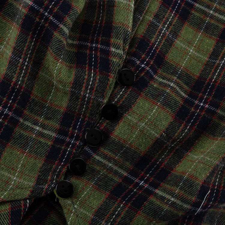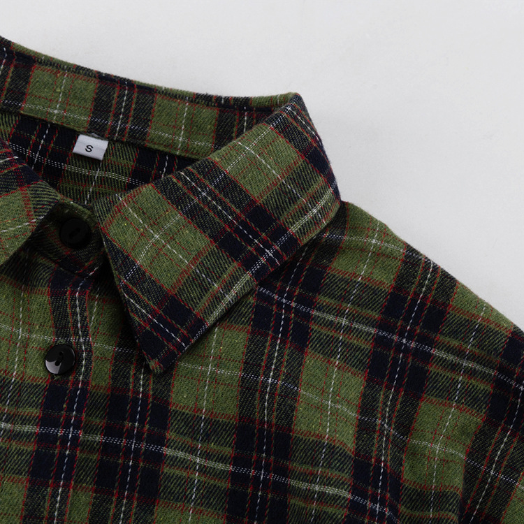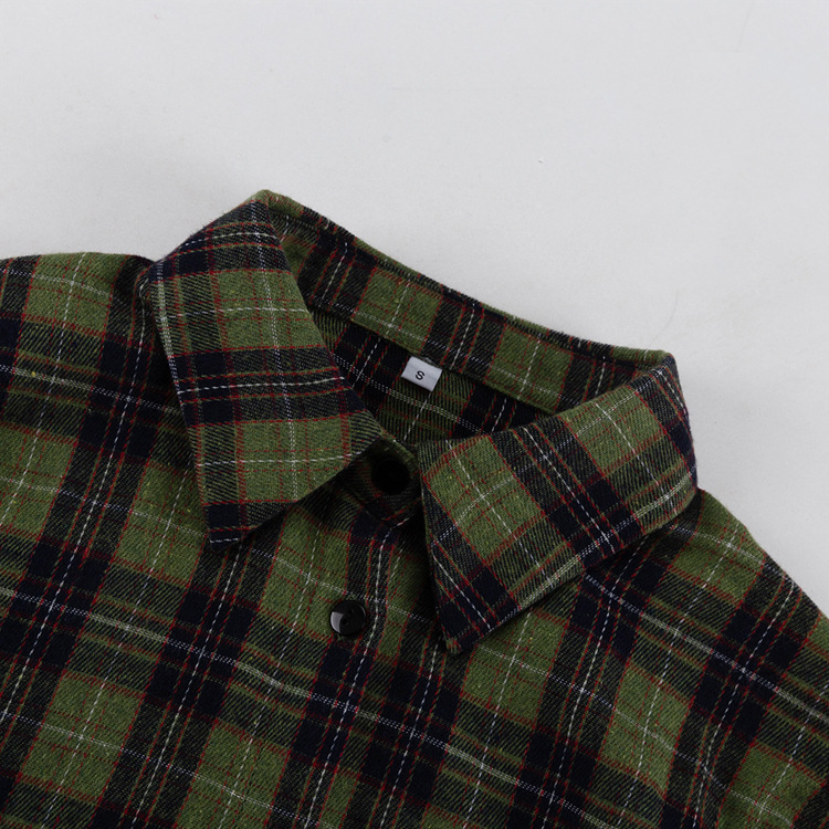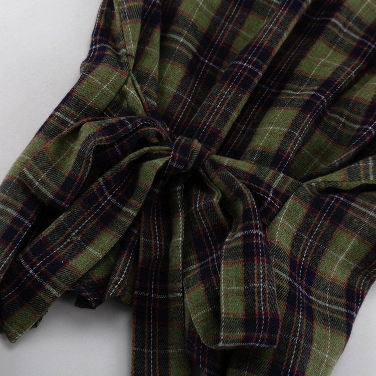 Retro Plaid Collared Long Sleeve Irregular Asymmetric Hem Cinched Blouse
