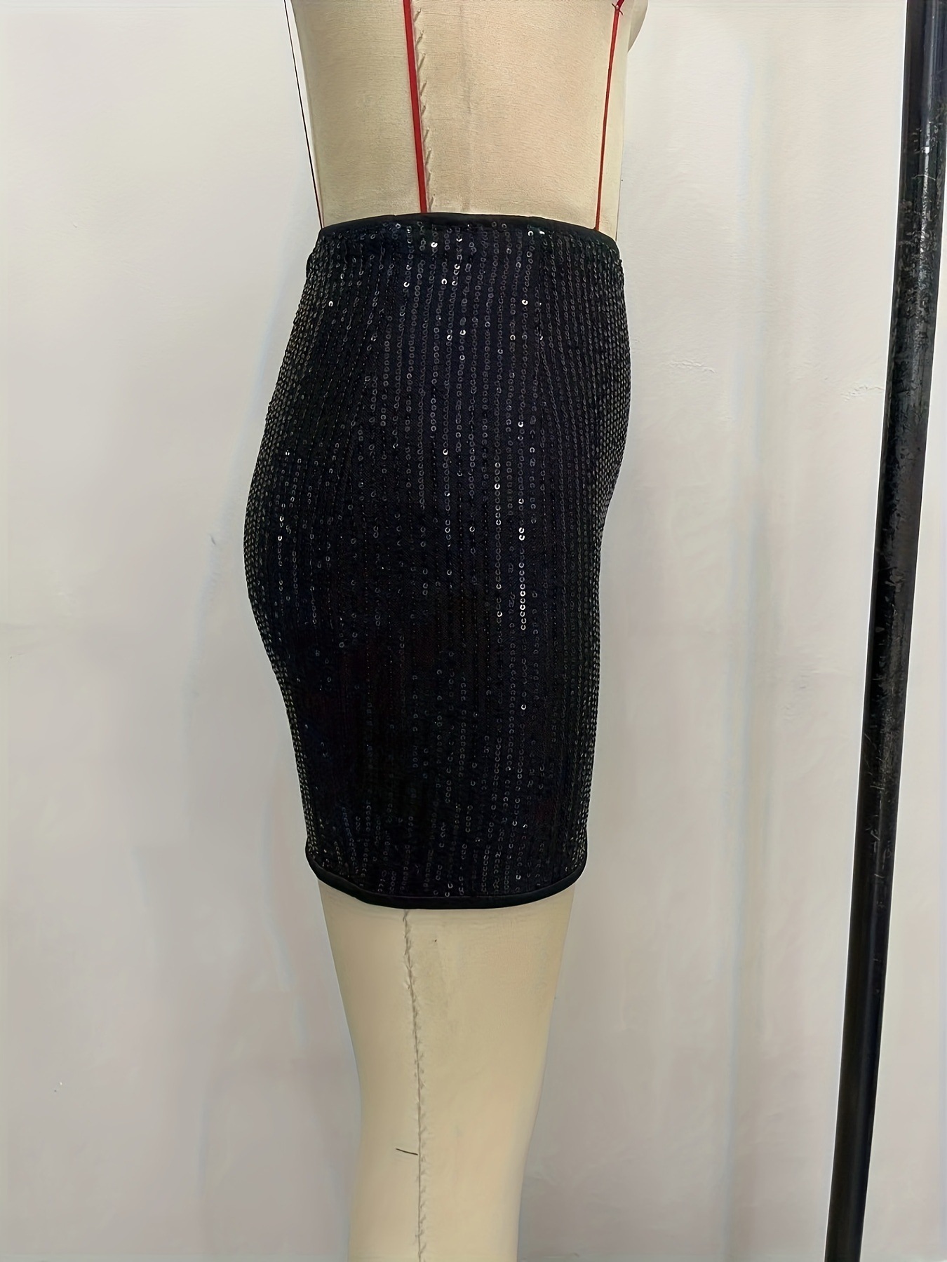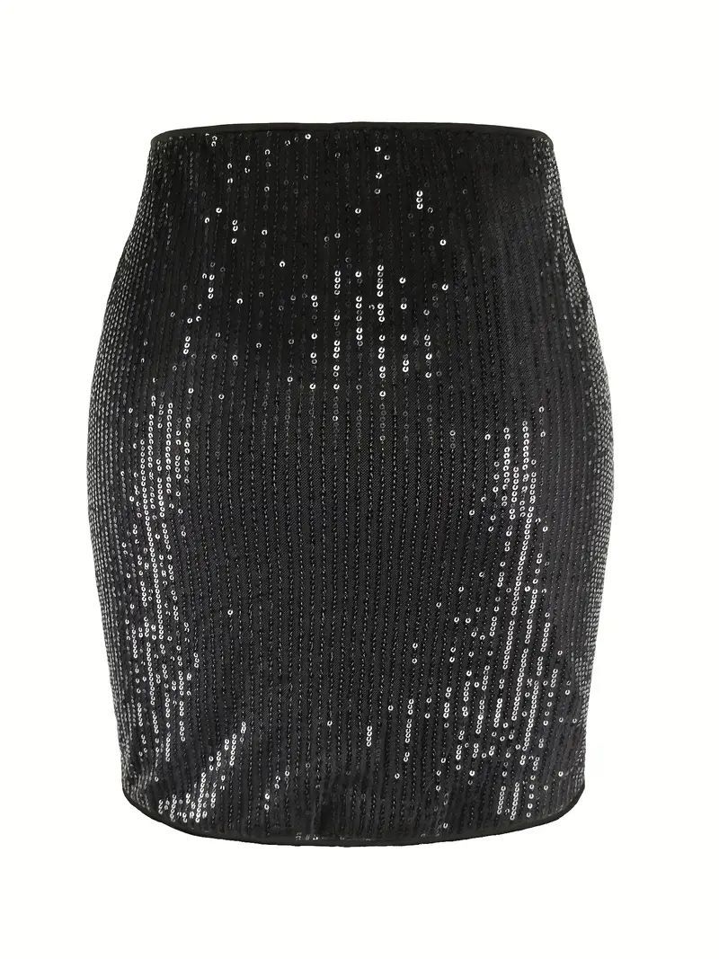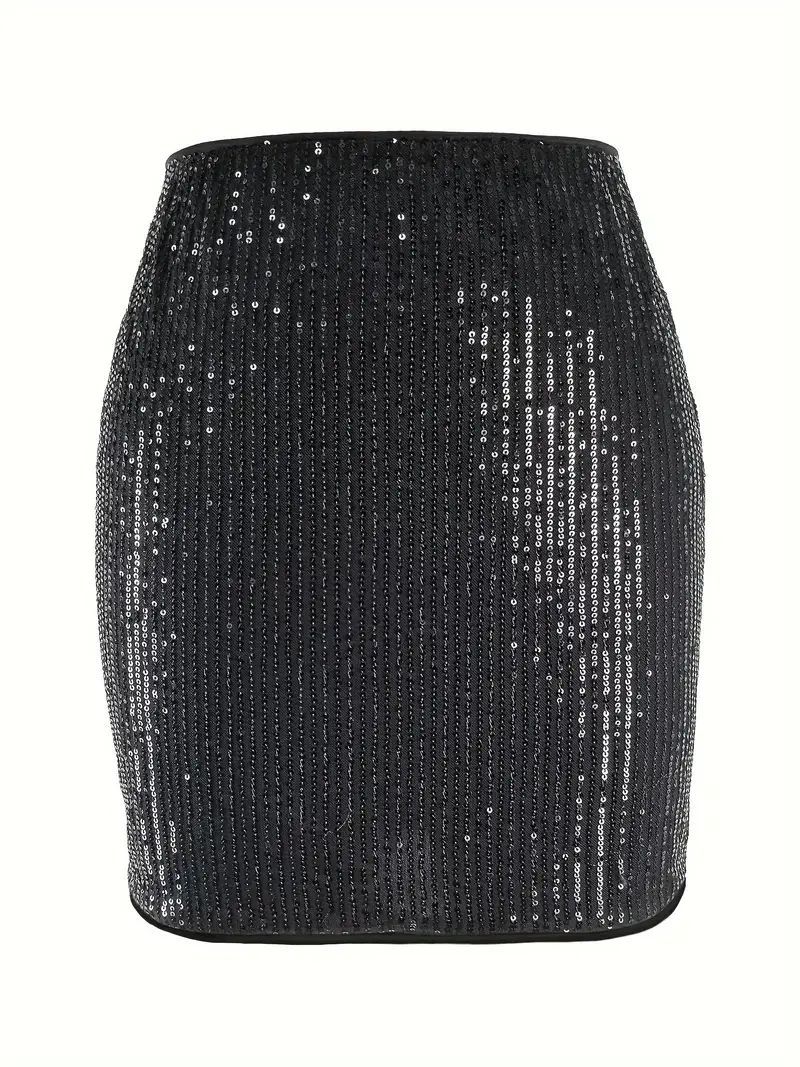 Sequined Double-Layer Mesh High Waist Figure Flattering Sheath Slimming Vacation Date Skirt