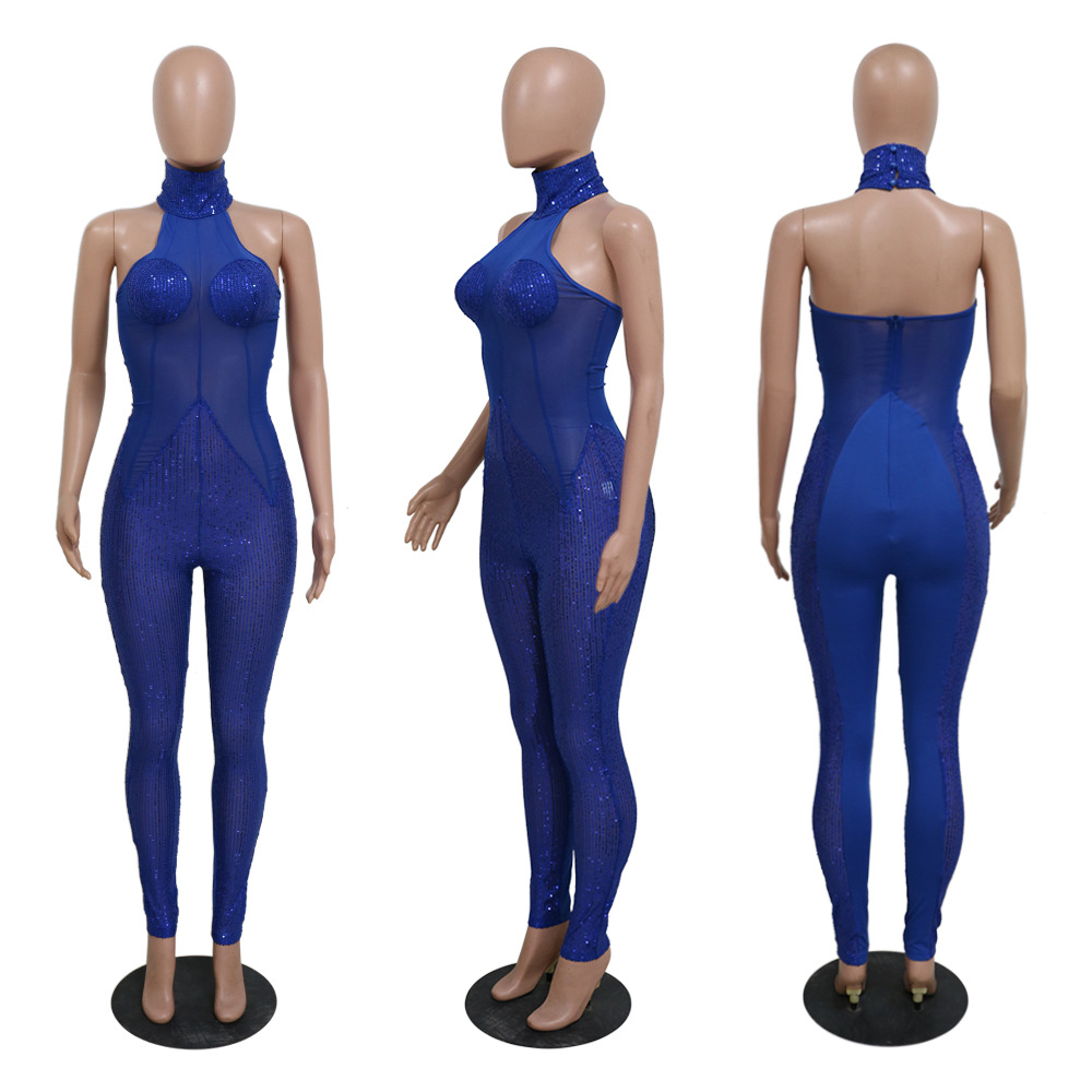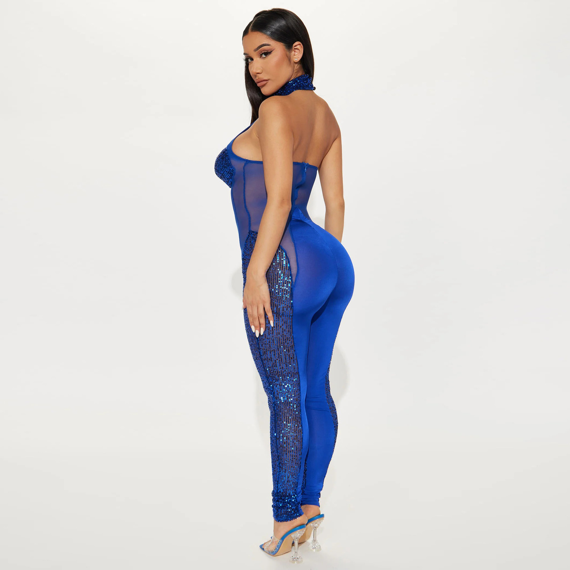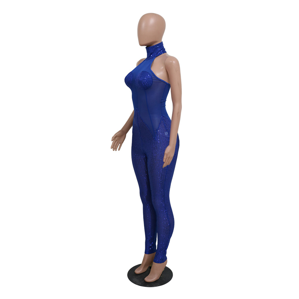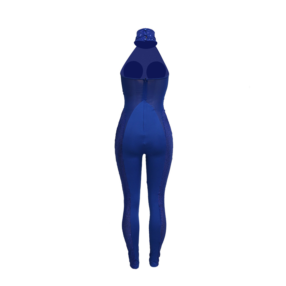 Sexy Lace Stitching Halter Backless Slim Fit Jumpsuit