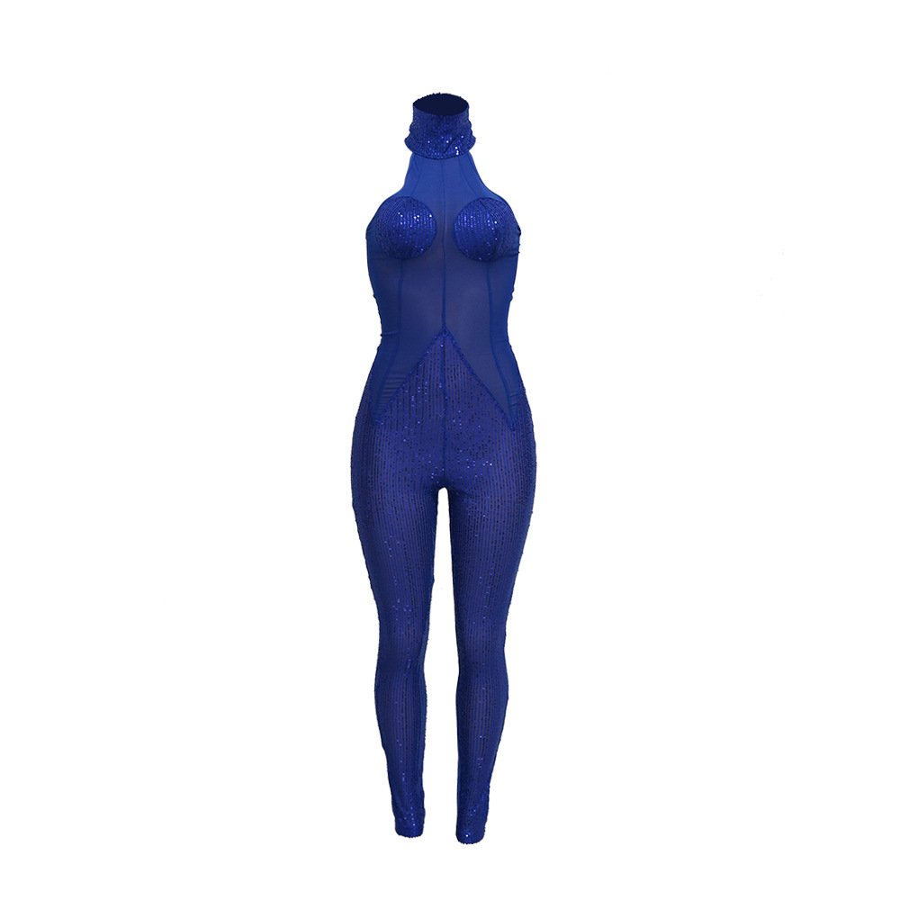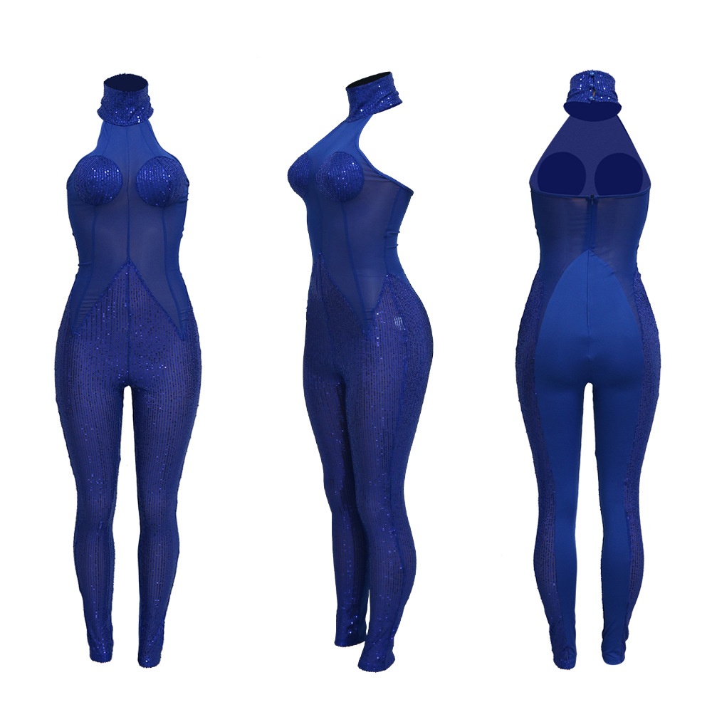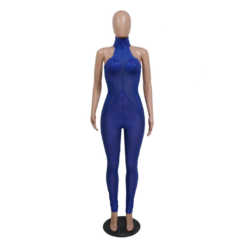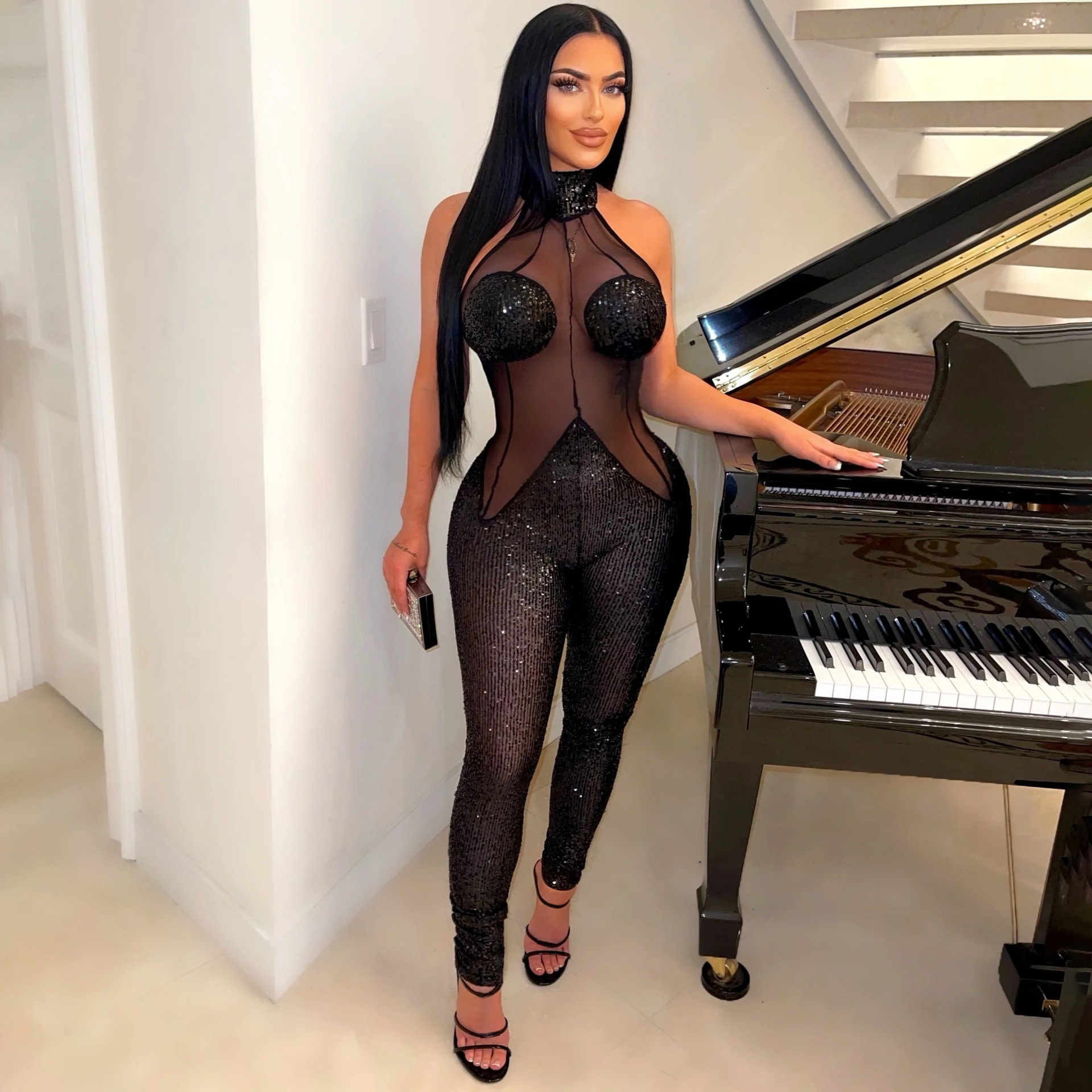 Sexy Lace Stitching Halter Backless Slim Fit Jumpsuit