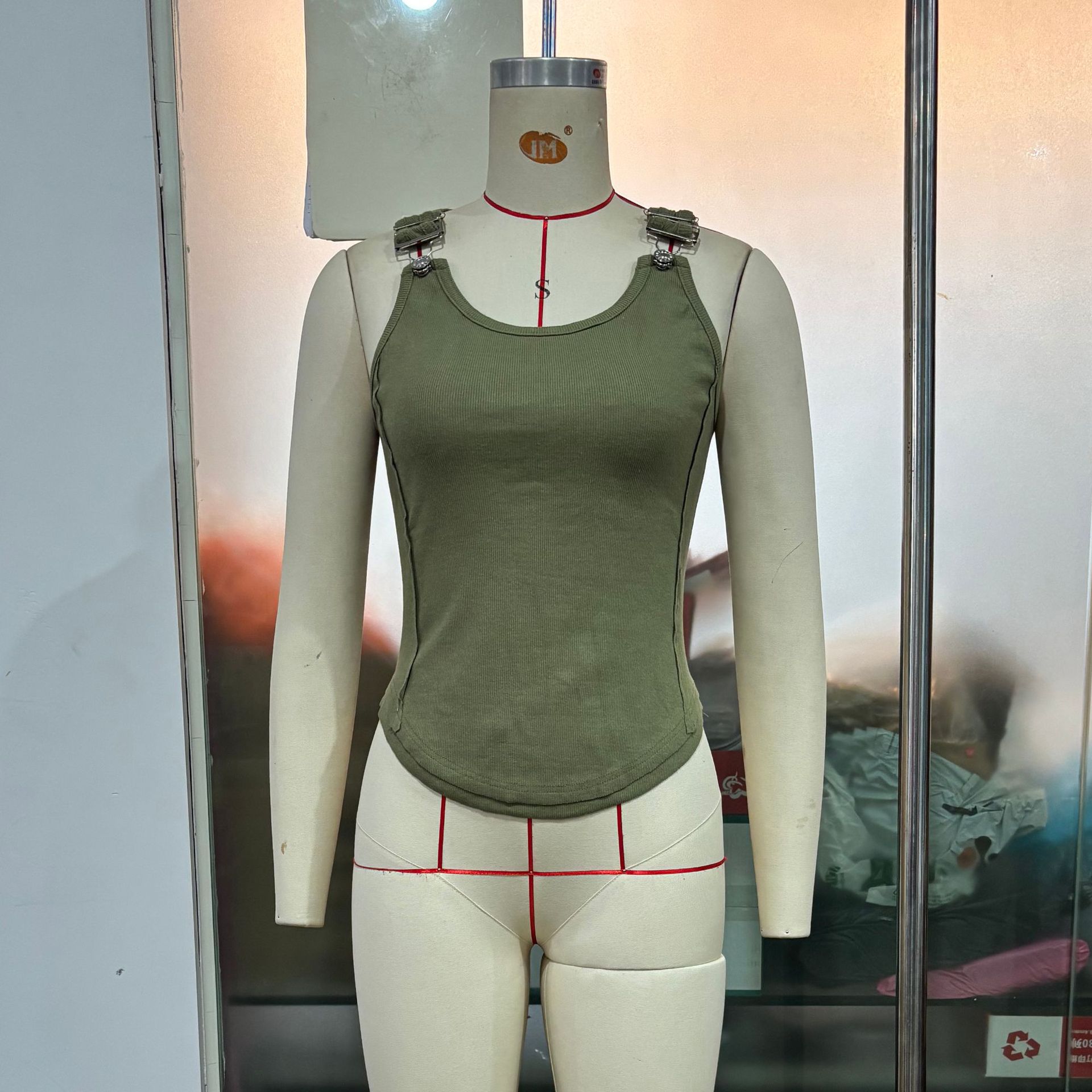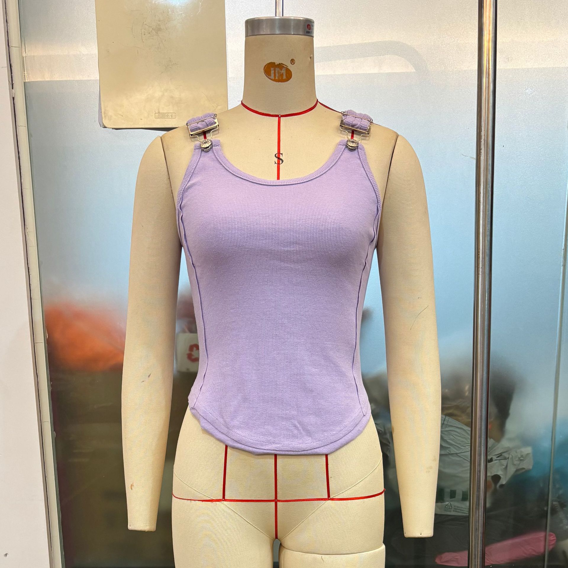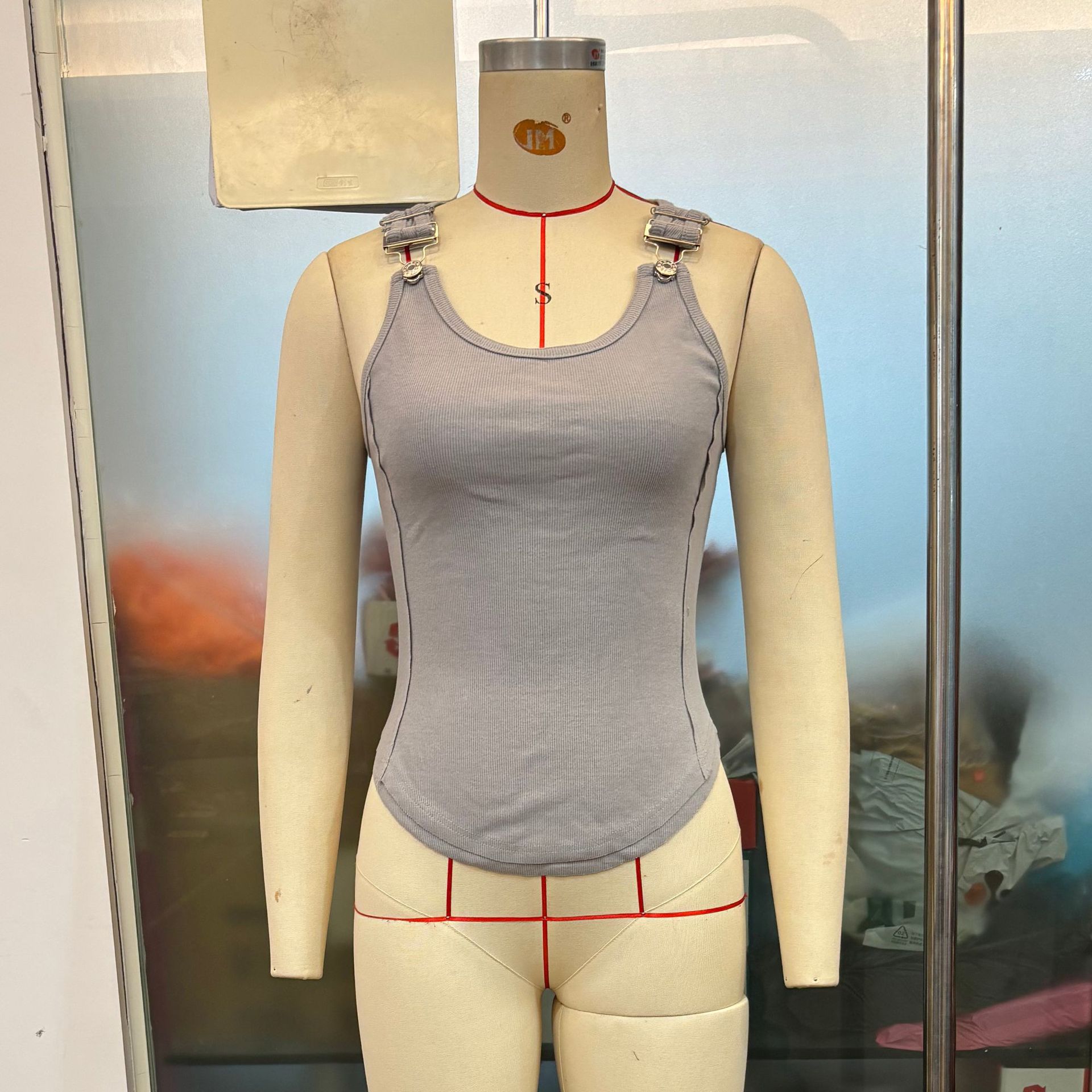 Slim Fit Adjustable Buckle Multi Color Spaghetti Strap Camisole Top T-shirt