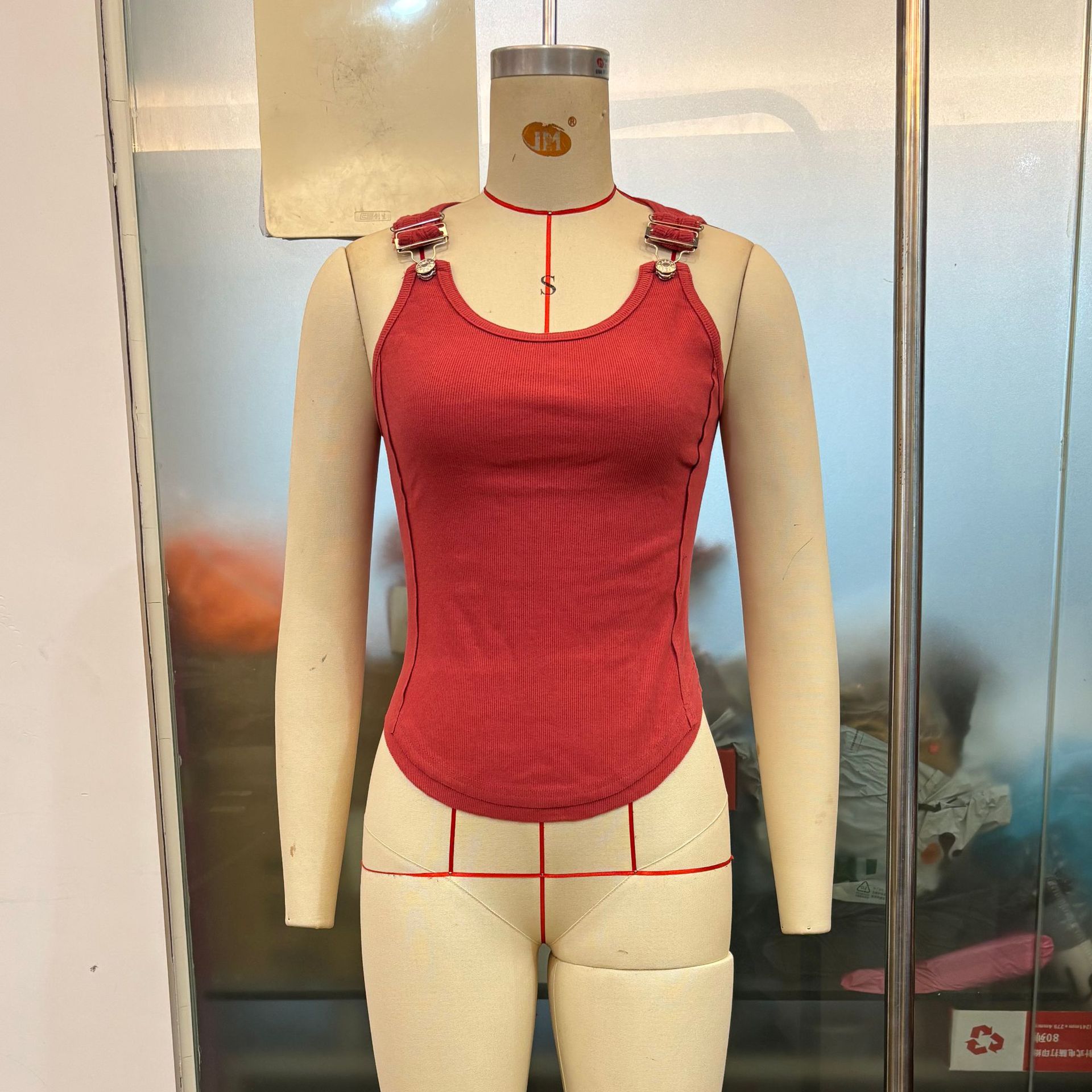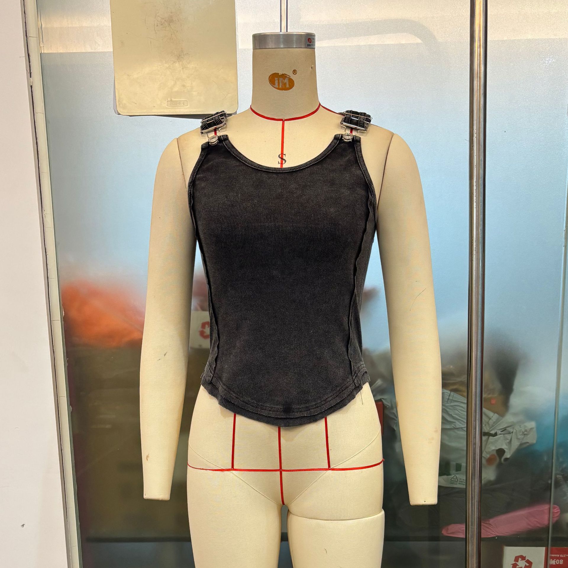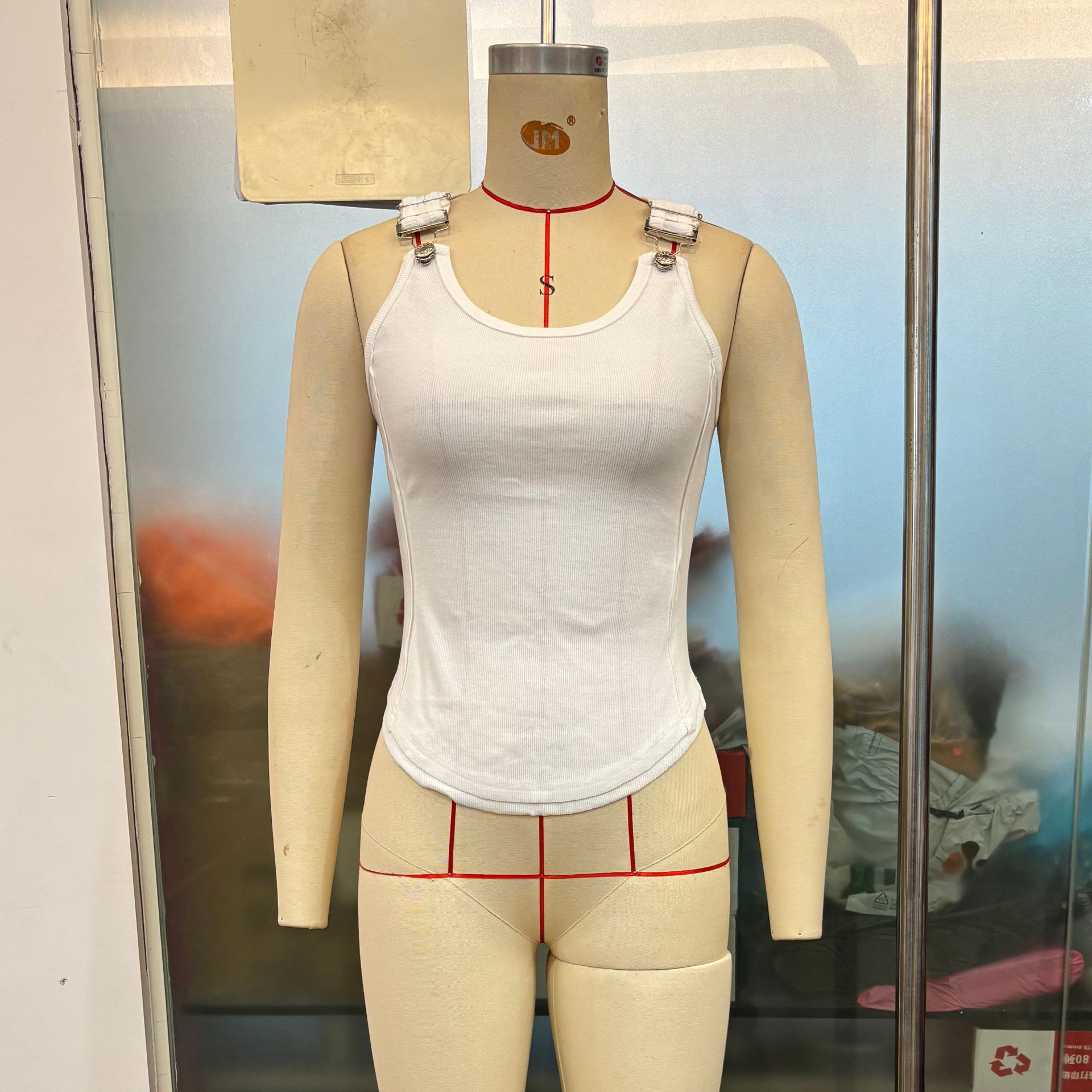 Slim Fit Adjustable Buckle Multi Color Spaghetti Strap Camisole Top T-shirt