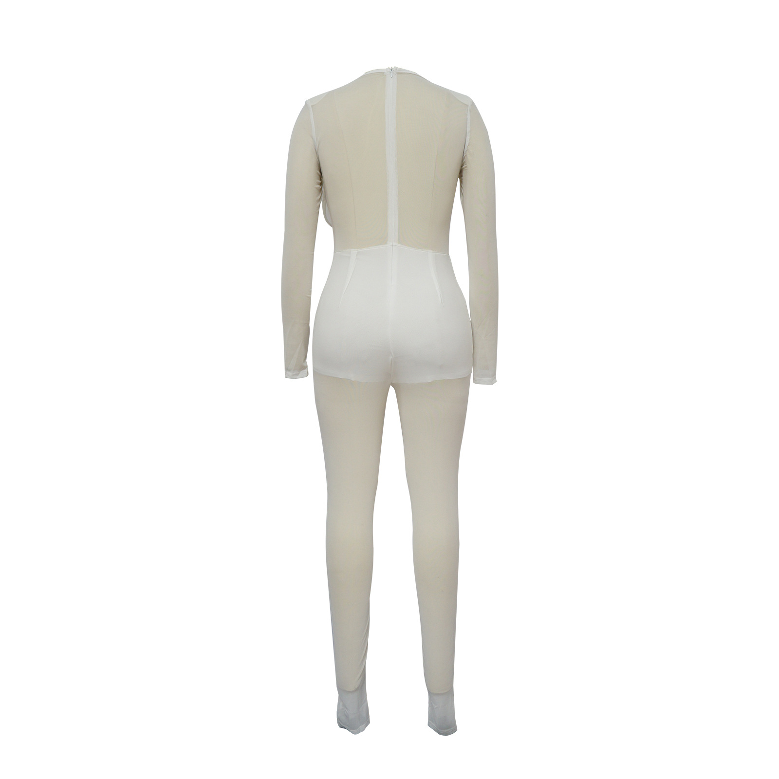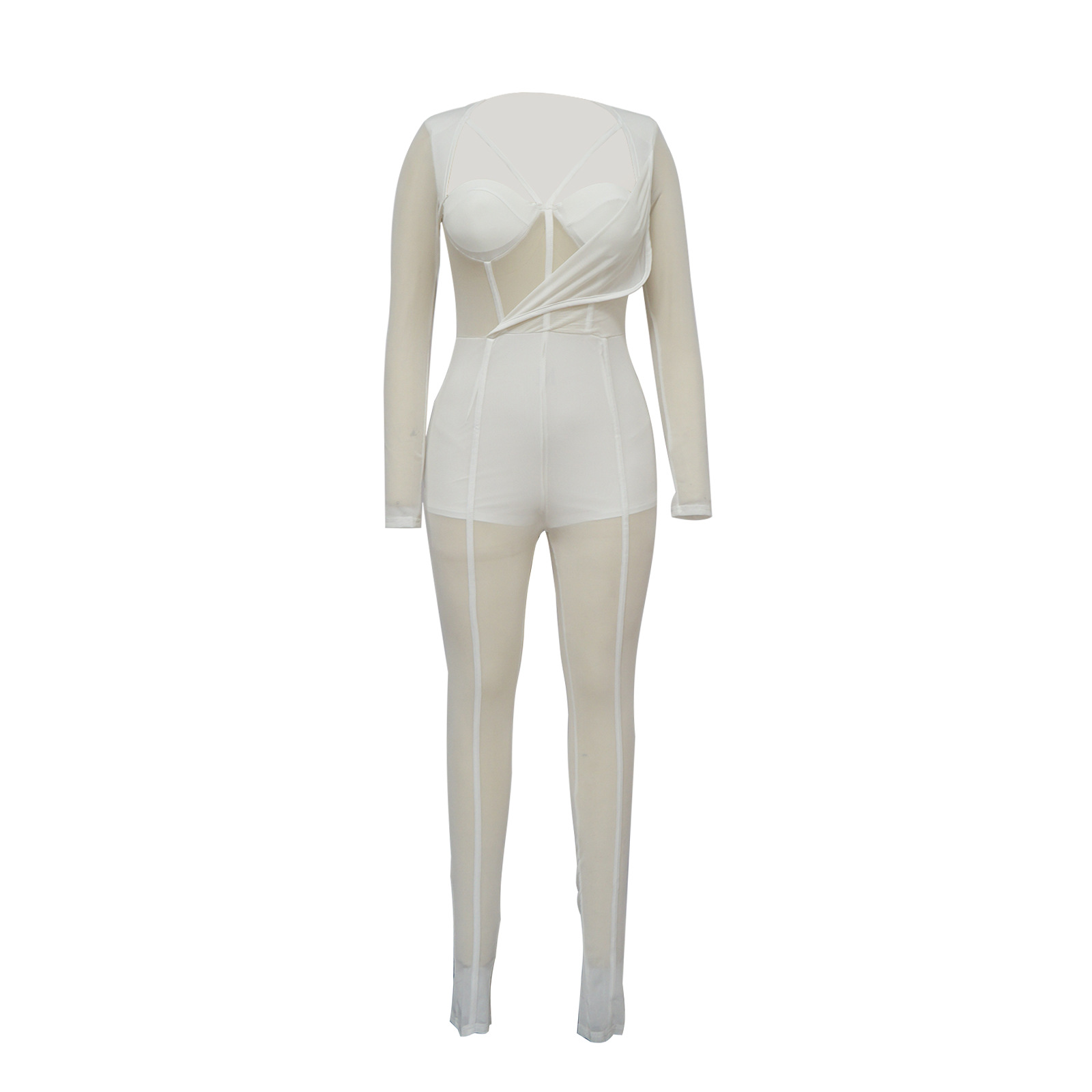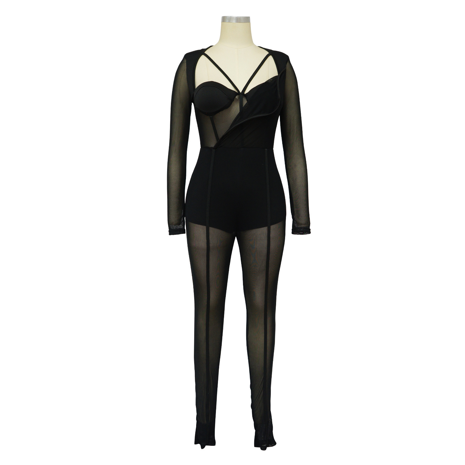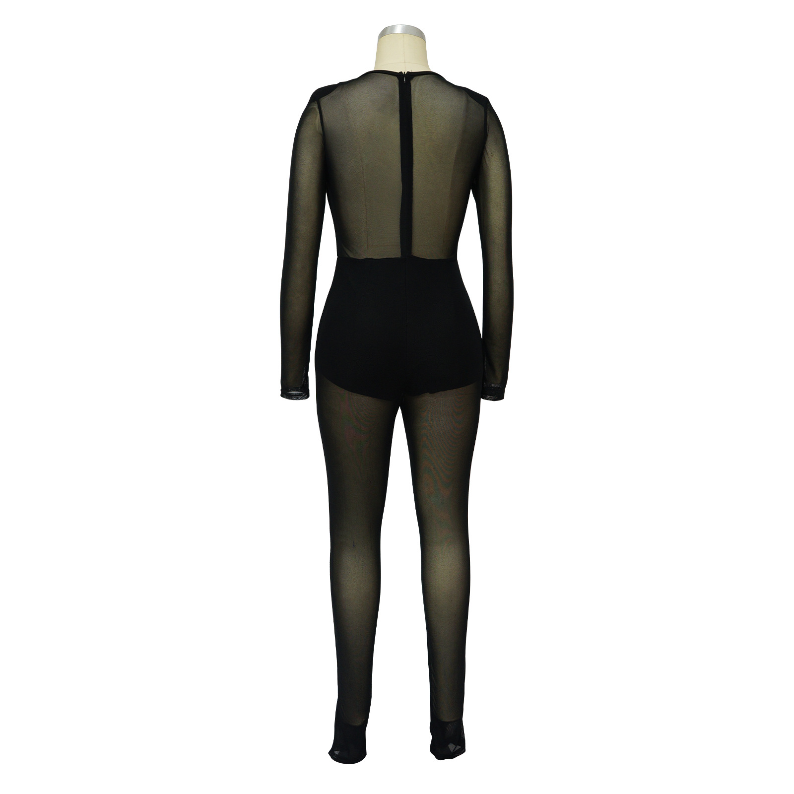 Sexy Lace Up Stitching See Through Long Sleeve Jumpsuit