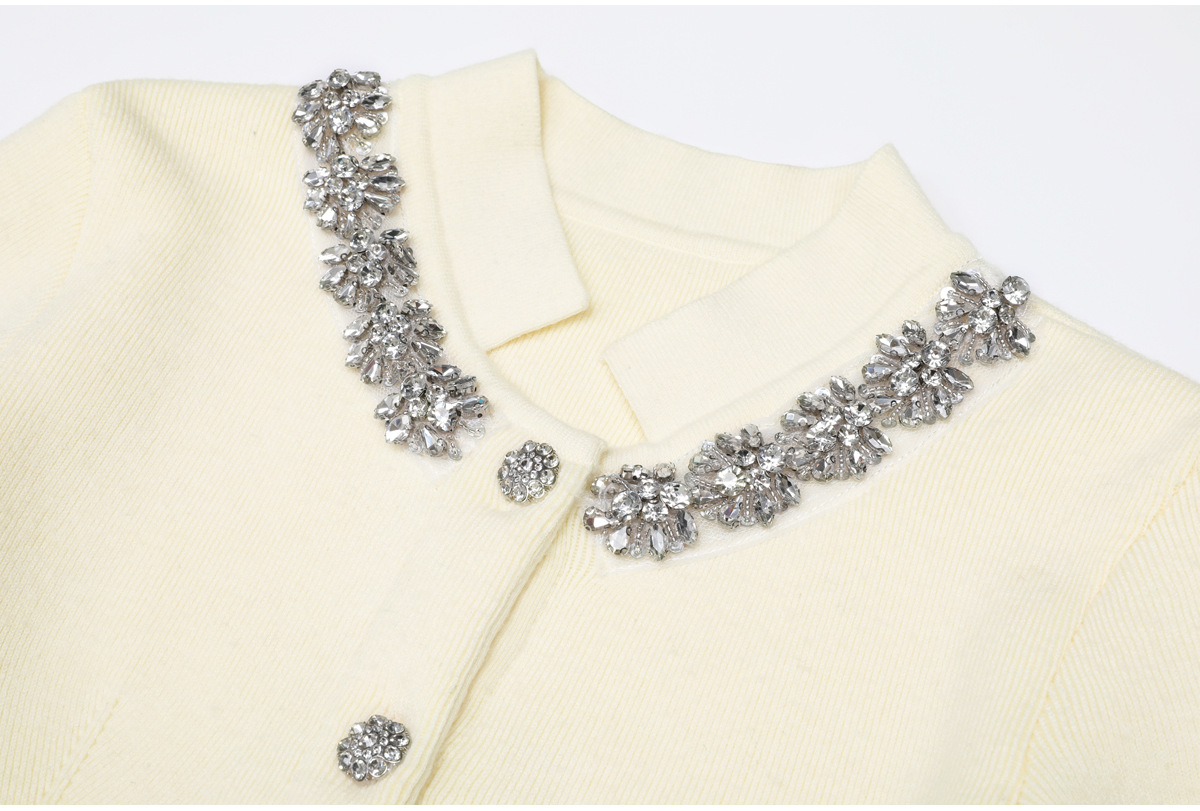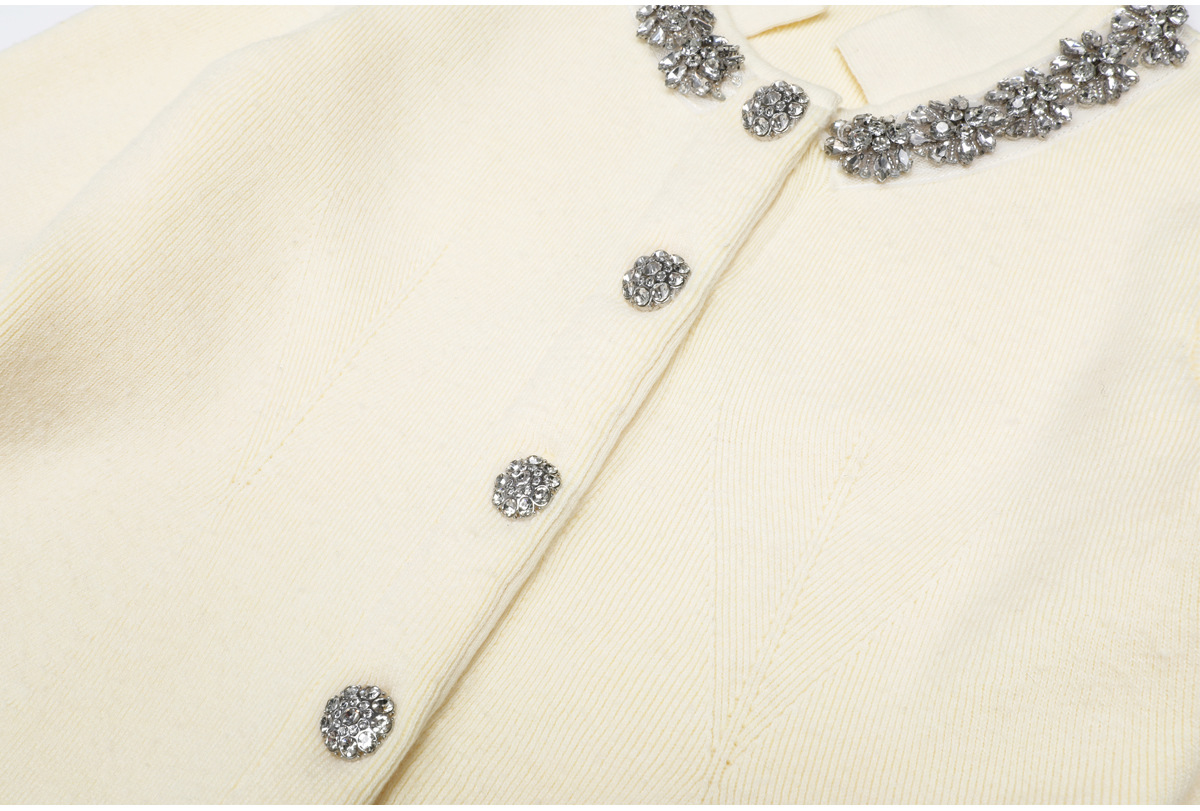 Spring Autumn Graceful Online Influencer Rhinestone Knitted Sweater Top Coat Women