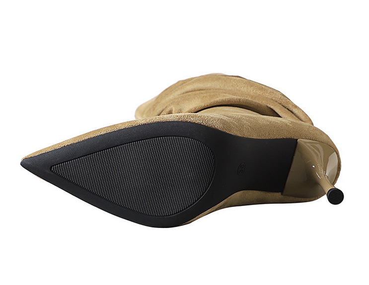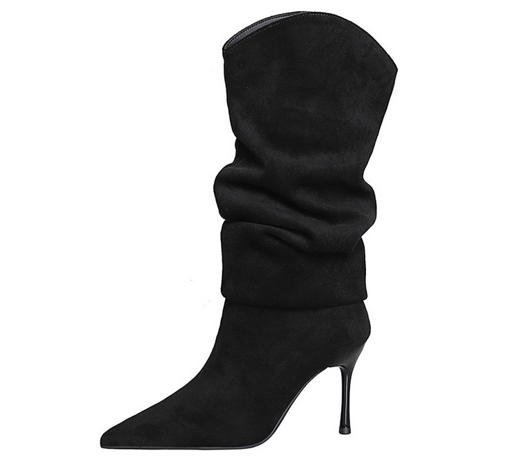 Stiletto Boots Women's Thin below the Knee Pointed Toe Pleated