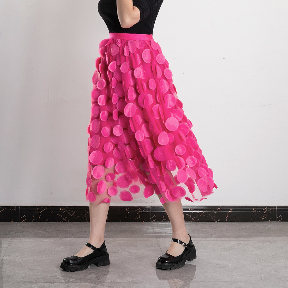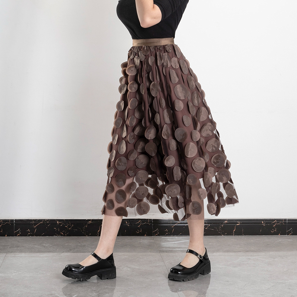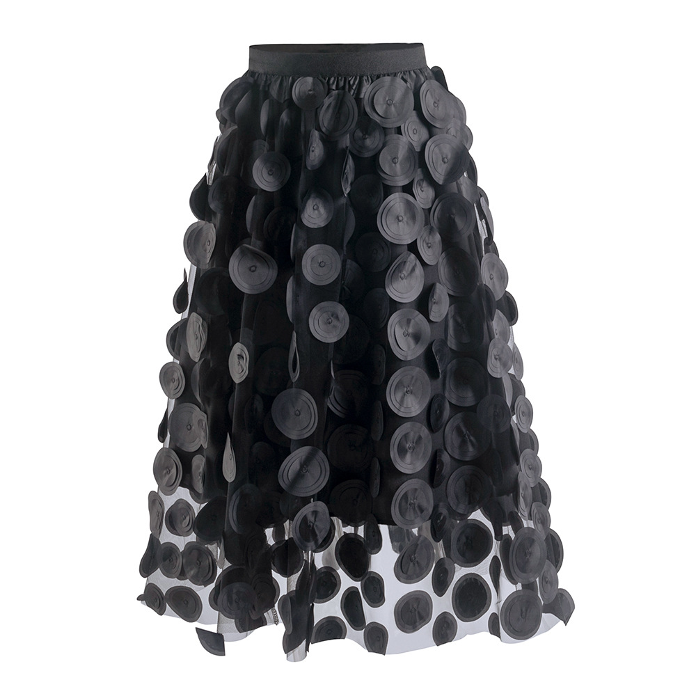 Three Dimensional Patch Stitching Mesh Women Midi Skirt